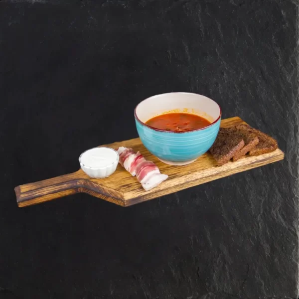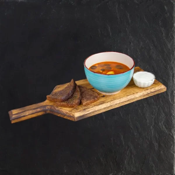 Густой и сытный суп с насыщенным мясным вкусом и пряным ароматом. Подаётся с обжаренным хлебом и сметанкой.